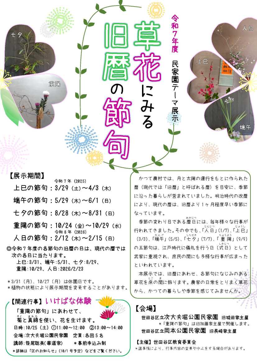 各節句になじみのある草花を、旧暦に合わせて床の間に飾ります。