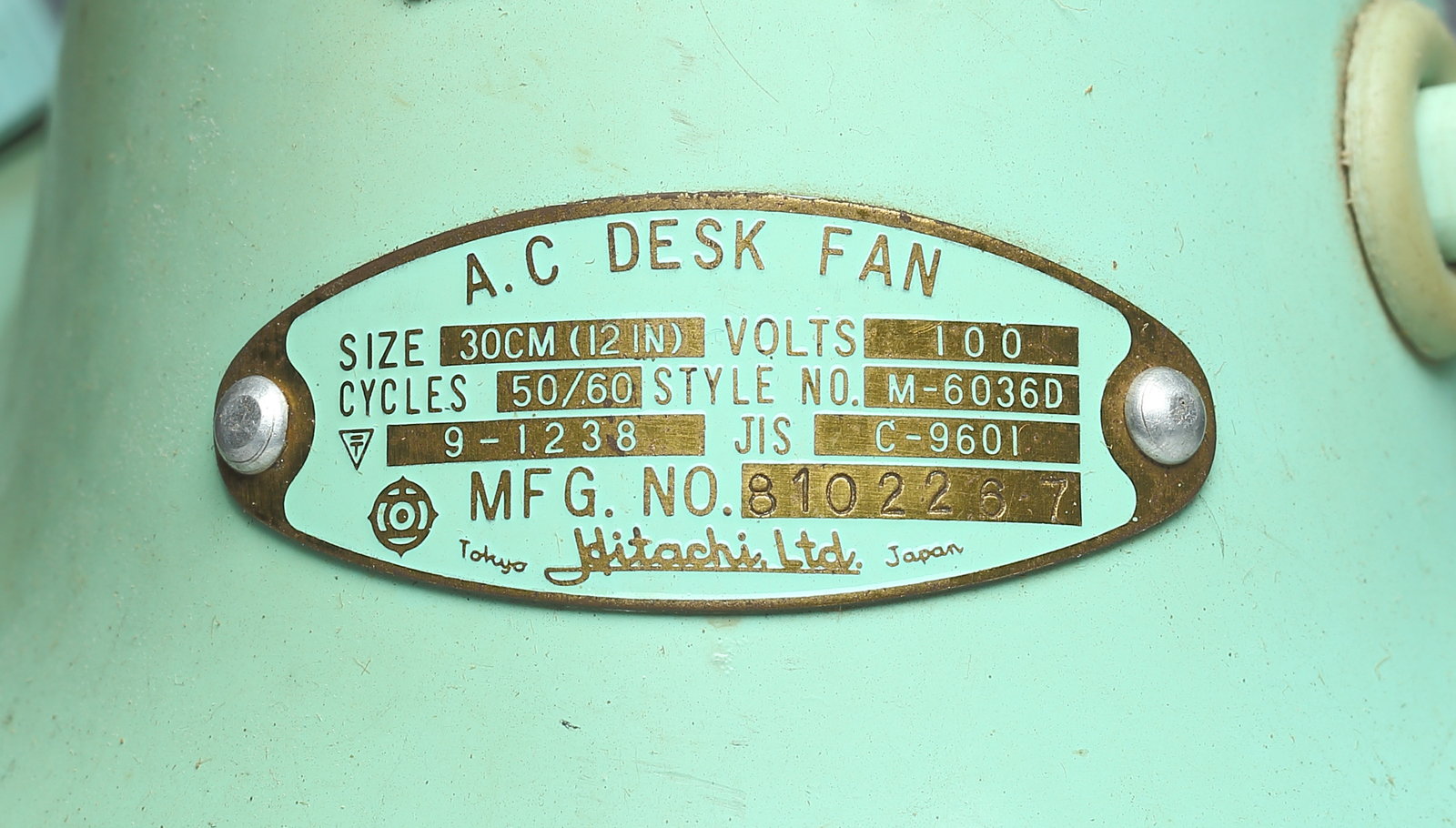 本機に見られる幅広3枚羽根は、第二次世界大戦後に各社で採用されていった。また、プラスチックの製造も戦後から始まり、本機にも各部で使われている。プラスチックの導入は、羽根を覆うガードのデザインをはじめ、扇風機の様式に様々な変化をもたらした。