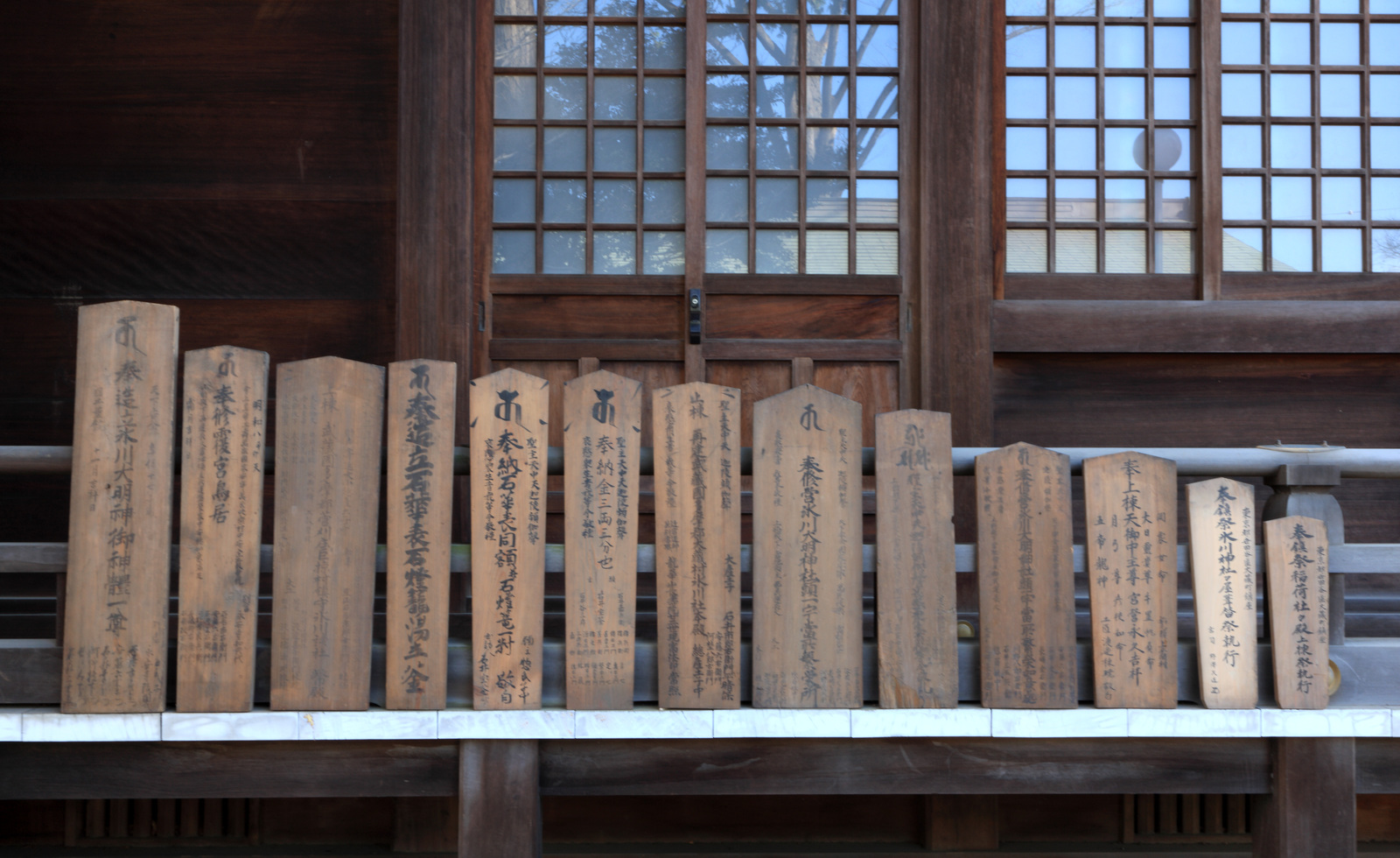 神社には江戸時代の棟札が11枚あり、他に永禄8年(1565)の棟札の写しが伝わっている。棟札のうちの1枚は現存する本殿のもので、文政7年(1824)にこの本殿が建てられたことが分かる。棟札には社殿や鳥居の造立の他、奉納金を元に土地を買い求めた記録等も記され、神社の変遷を知ることができる貴重な資料となっている。