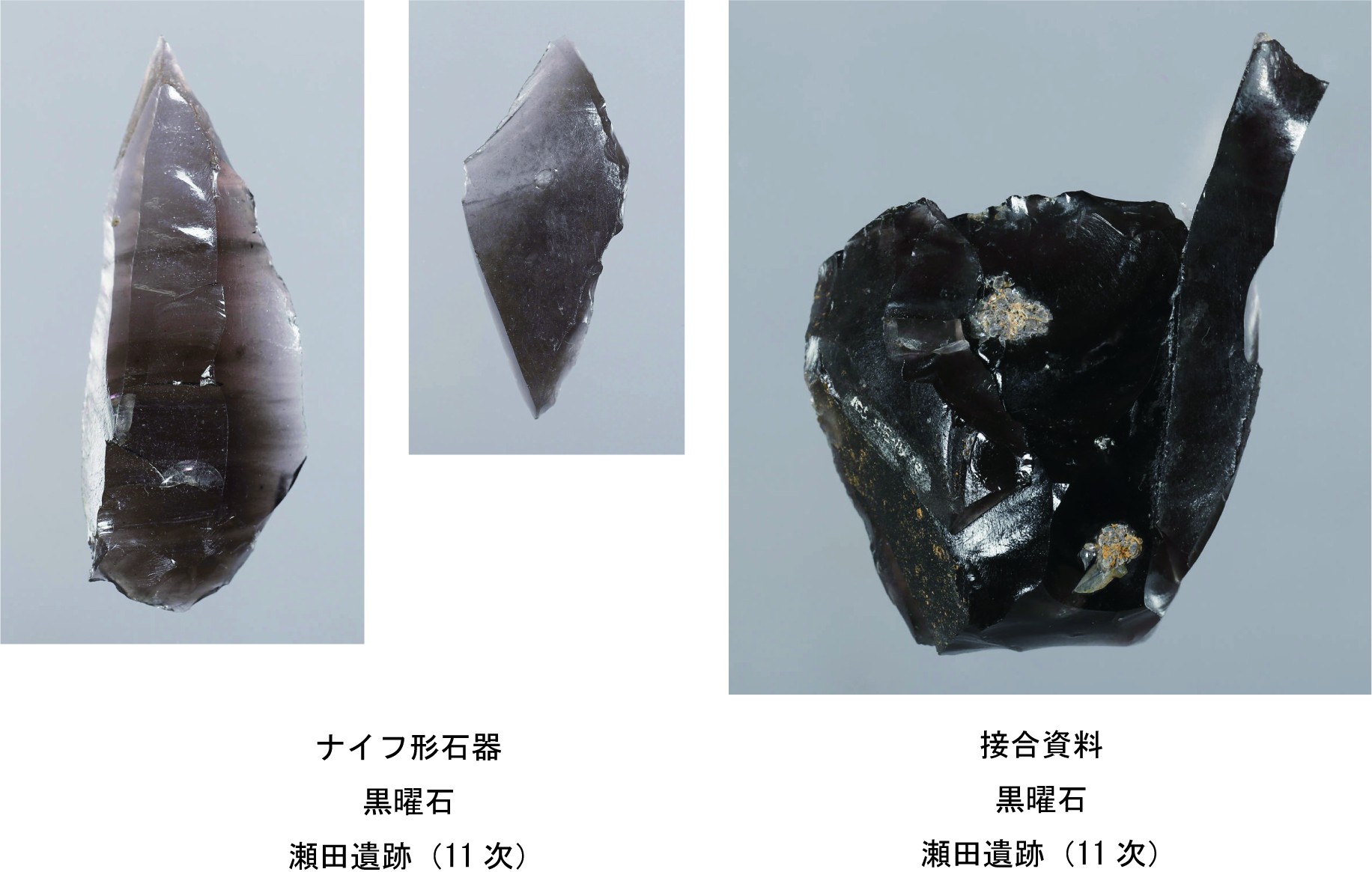先史時代の石器は「人の手の延長」とよべるほど生活に密着した道具でした。そのため、石材の選択は用途に合わせて慎重に行われました。遺跡で出土する石材には、遺跡の近場で入手できるものに限らず、遠隔地でなければ入手できないものもあります。 |