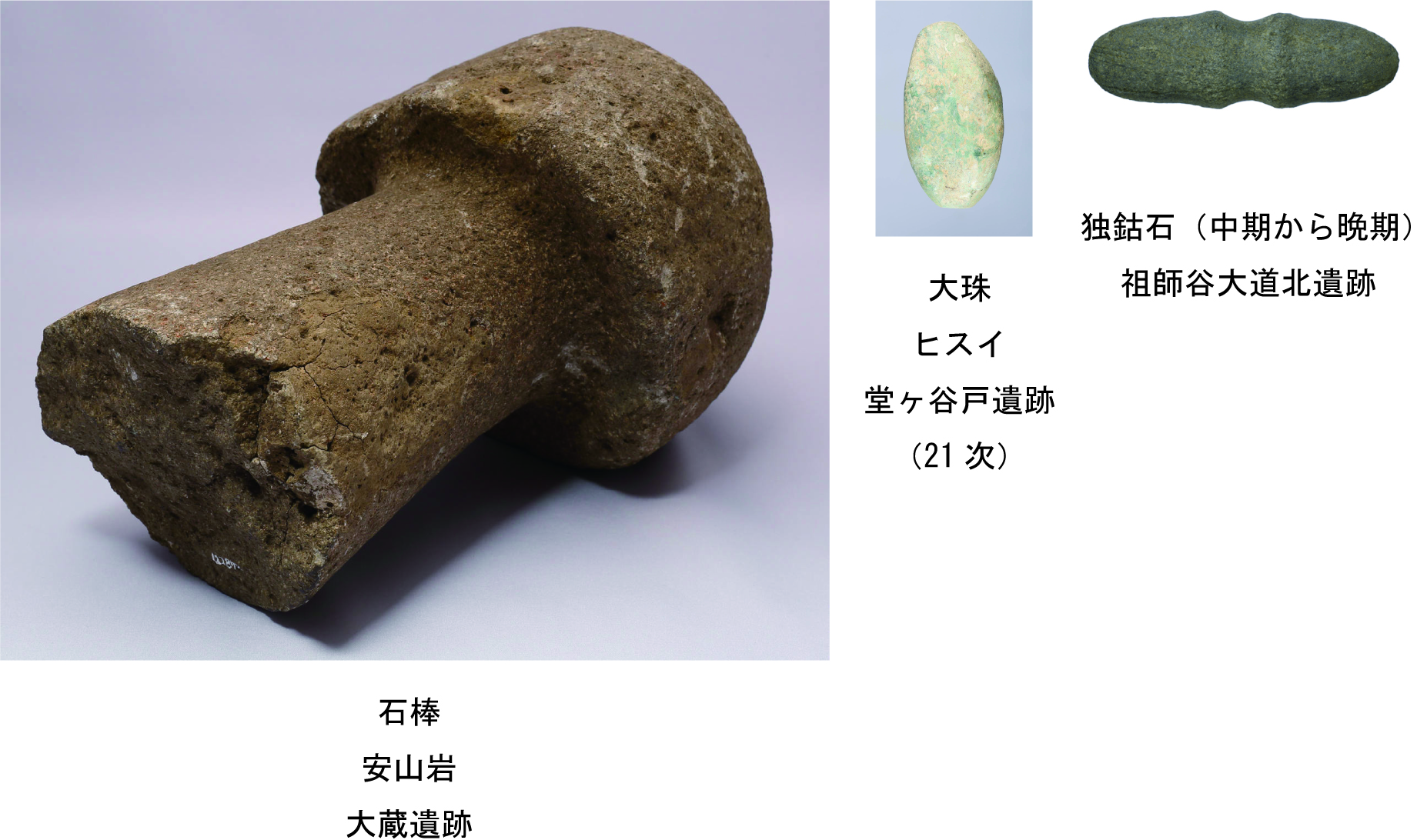 また、石棒(せきぼう)や独鈷石(どっこいし)などの祭祀具や、ヒスイ製の大珠(たいしゅ)などの装身具が出現します。