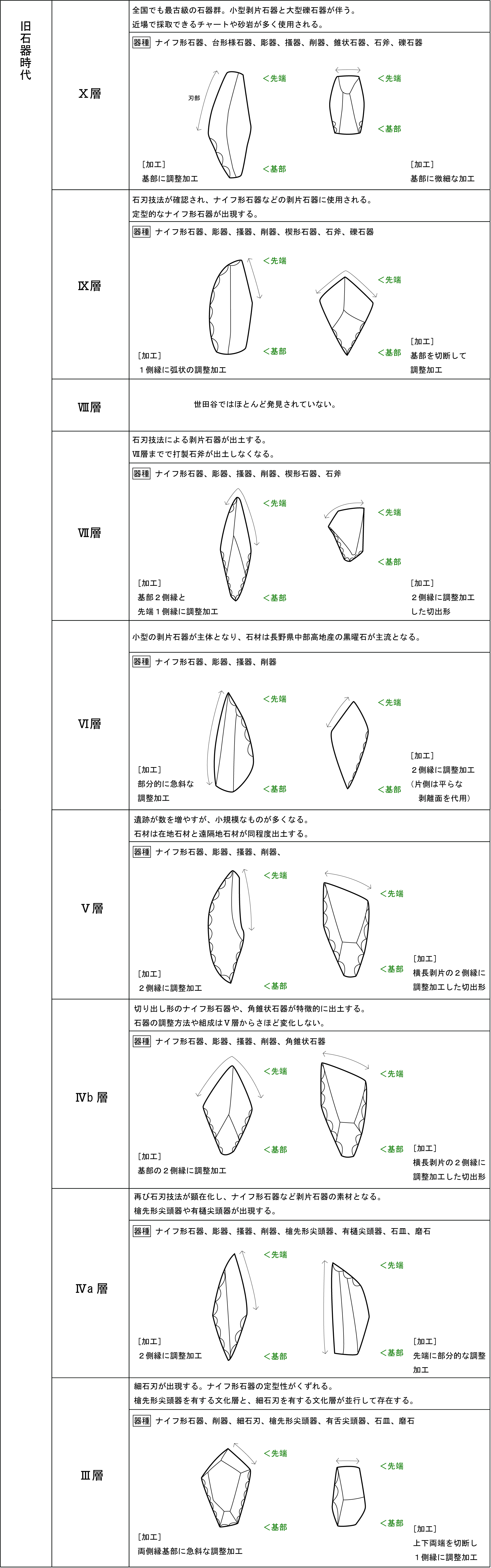 | Ⅷ層 | Ⅷ層自体が世田谷区ではほとんど確認されておらず、石器も発見されていません。 |