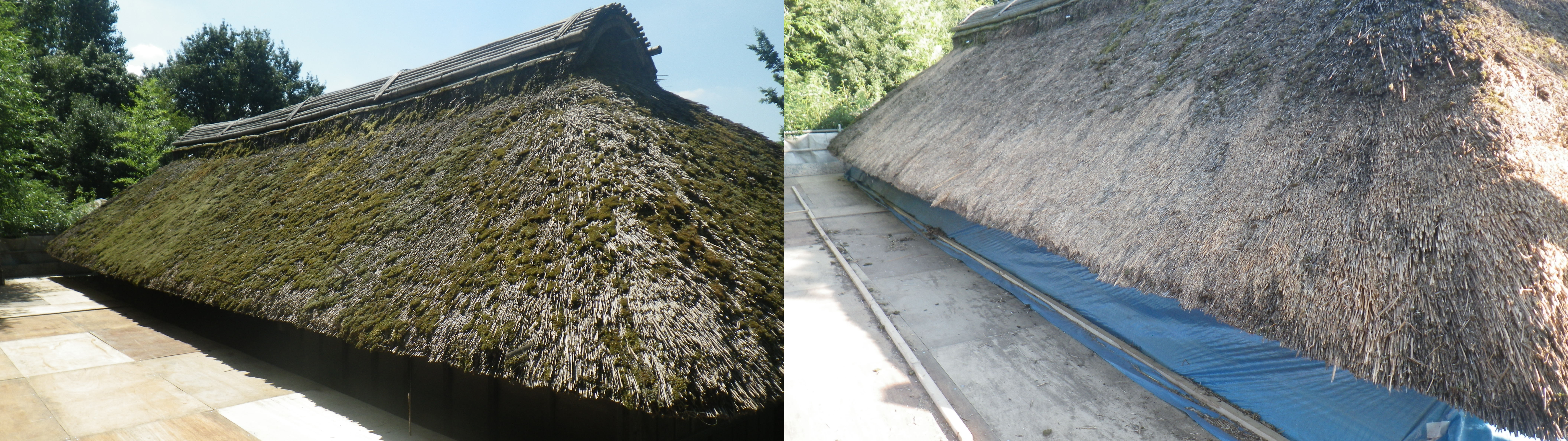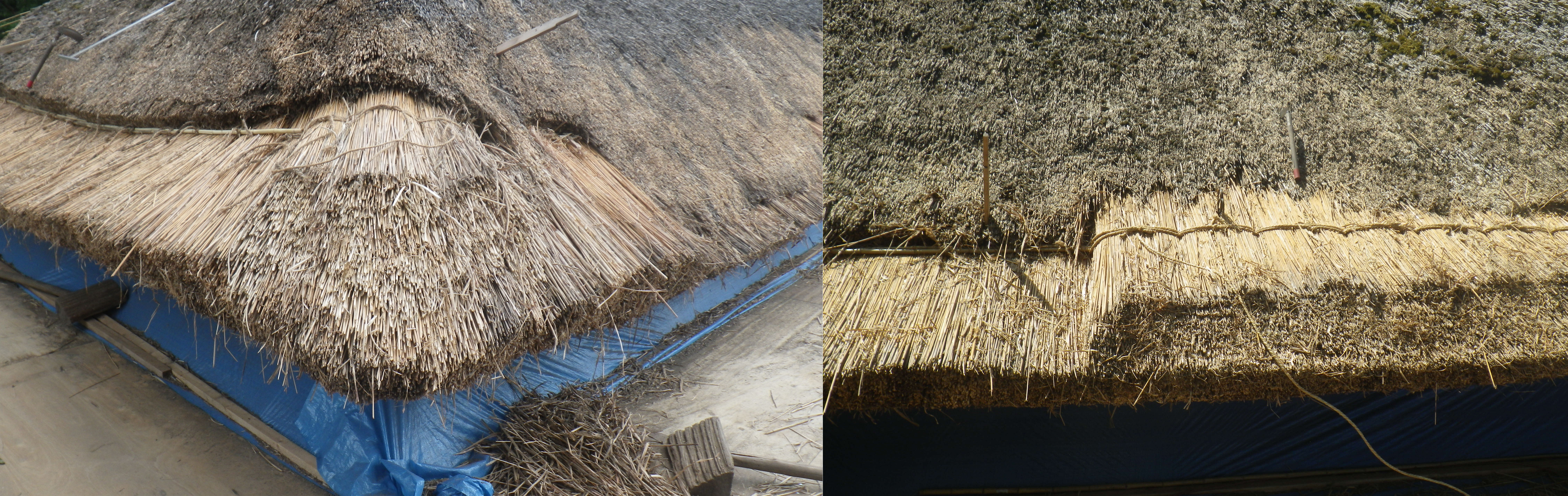 このようなことから、茅葺きの屋根を維持管理では、日々変化していく屋根の様子を確認し、周辺環境を改善するなどの対応をしながら、適切な時期に修理を行うことが必要です。