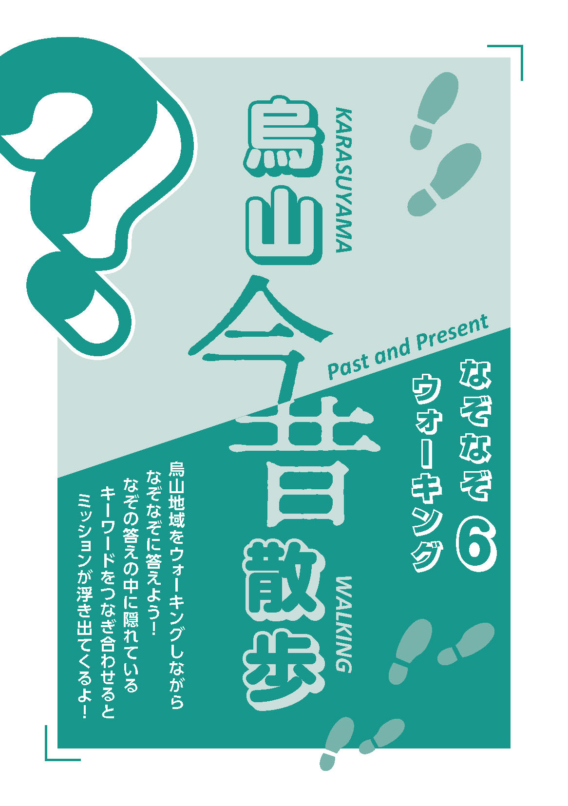 『なぞなぞウォーキング』では、各テーマに関連したなぞなぞを設定しています。なぞの答えに隠れているキーワードをつなぎ合わせるとミッションが浮き出てきます。区内の文化財について知る、歴史を学ぶきっかけとして、ぜひご活用ください。